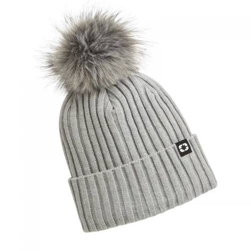 W REMOVEABLE POM BEANIE GRAY